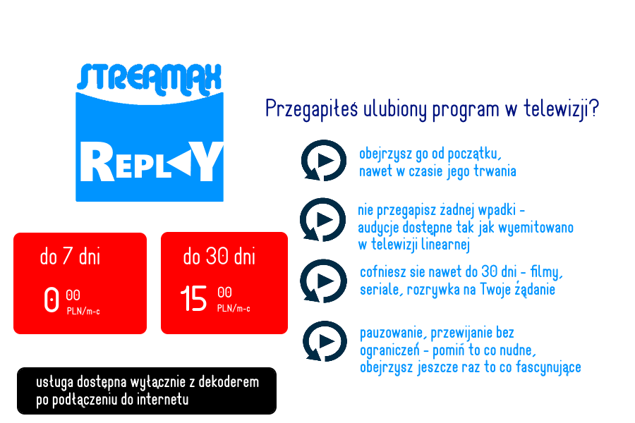 * - nie dotyczy opłaty aktywacyjnej za dekodery/moduły w usłudze Multiroom 3. Za każdy dołączony produkt naliczany jest rabat, począwszy od 2.miesiąca trwania Umowy (max. 40 zł/m-c brutto). |